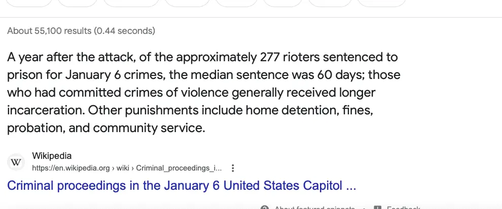 Why are you gaslighting us? Your screenshot proves you wrong LOL. How dumbThat was actually more (in terms of length) than what the average 1/6 insurrectionist got: