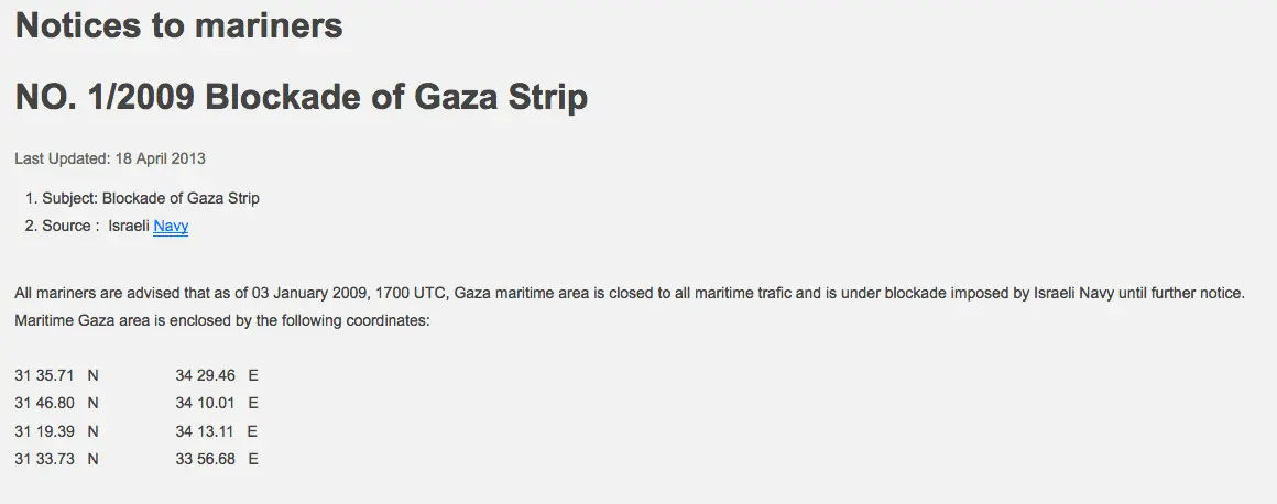 2009: Ceasefire was officially declared between Israel and the Hamas administration in Gaza, although skirmishes occur frequently. Blockade Established.