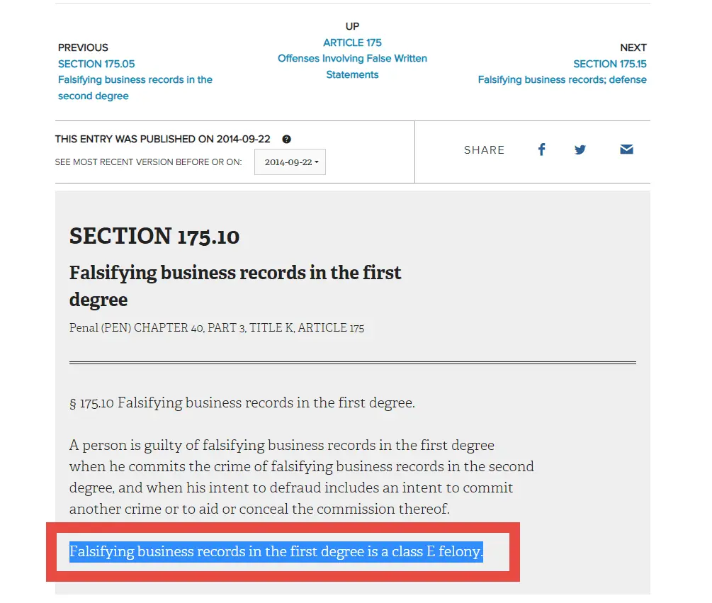 I just told you don’t link. Tell me. You can’t because the felony isn’t even named. That falsifying records is a misdemeanor, and the time limit has already passed.