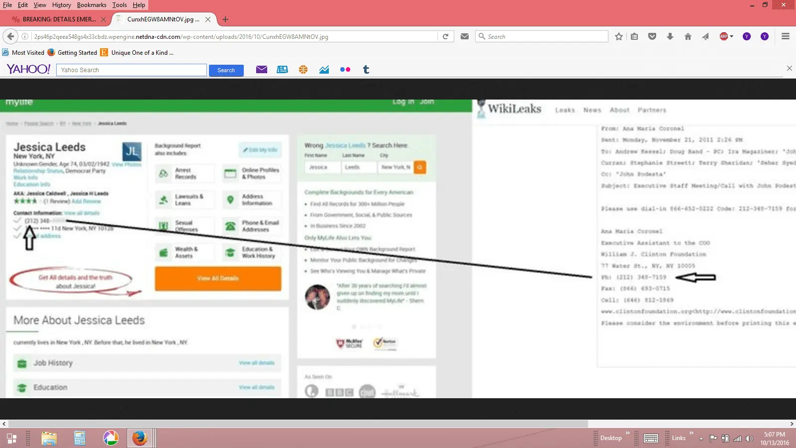 Jessica Leads, who is accusing Trump of rape, has the same phone number as the Clinton Foundation… that’s curious