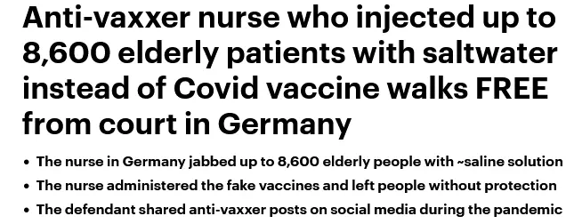 Anti-vaxxer nurse injected some 8,600 patients with fake Covid vaccine