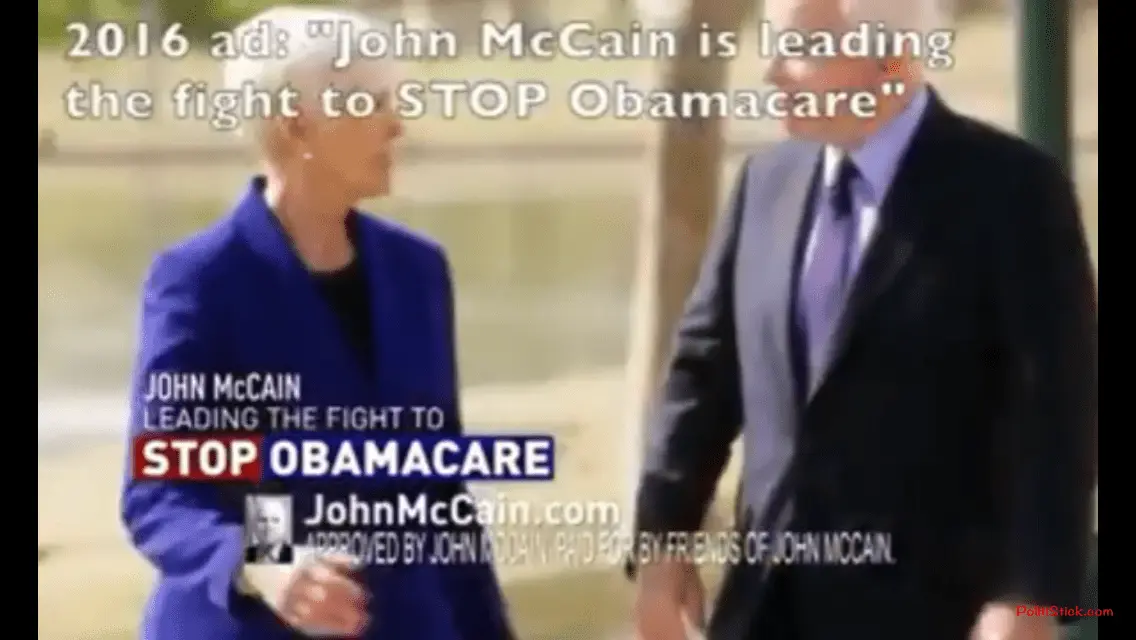 This is how McCain will always be remembered, right before voting against repealing and replacing Obamacare, which is what he was elected on.