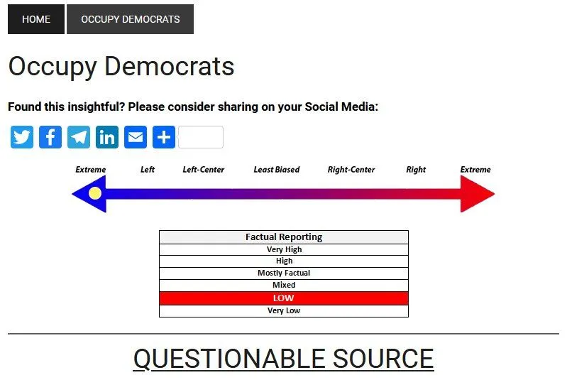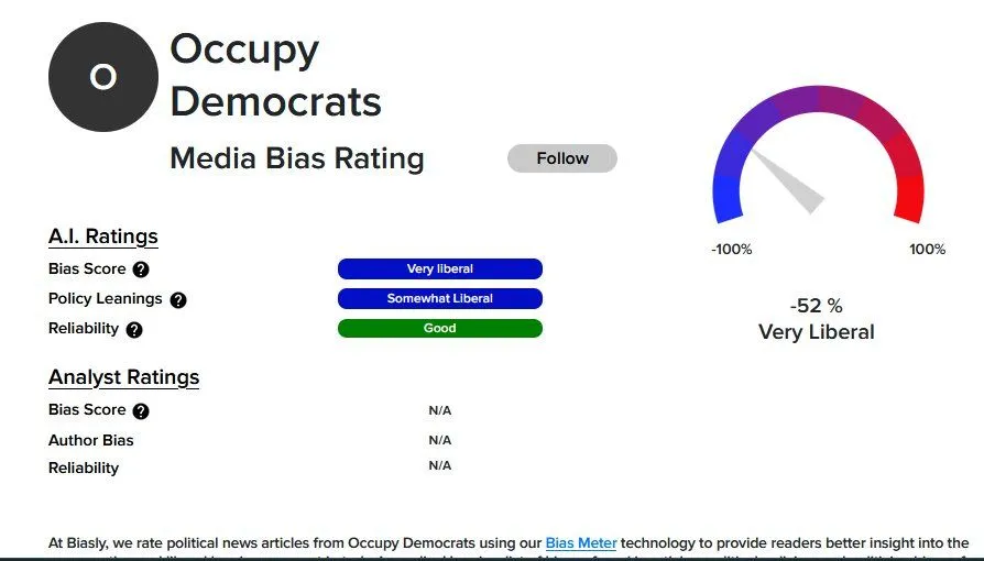 Every media rating organization you can find rates "Occupy Democrats" as being a "questionable" left-wing "media source."