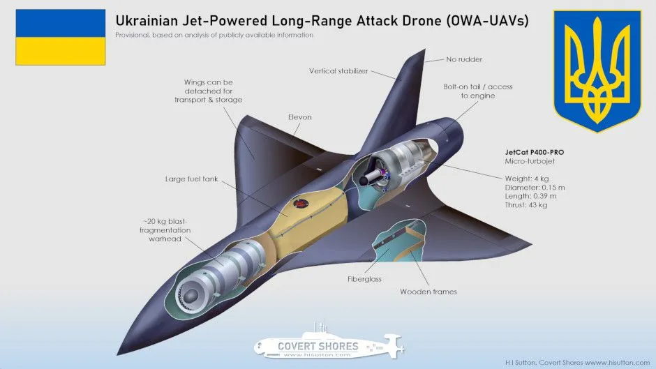 A new type of Ukrainian long range drone has appeared in Russia. A crashed example of the jet powered drone was shared on Russian social media. It is evidently a type of one-way attack drone (OWA-UAV).The drone is interesting in several ways…Read More >….www.hisutton.com
