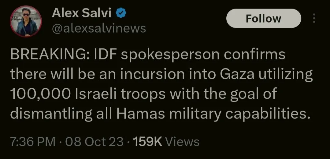 Israel needs to comb every square inch of that place and locate every damn weapon and every kidnapped soulCould be up to half a million reservists ready for deployment from what I hear.