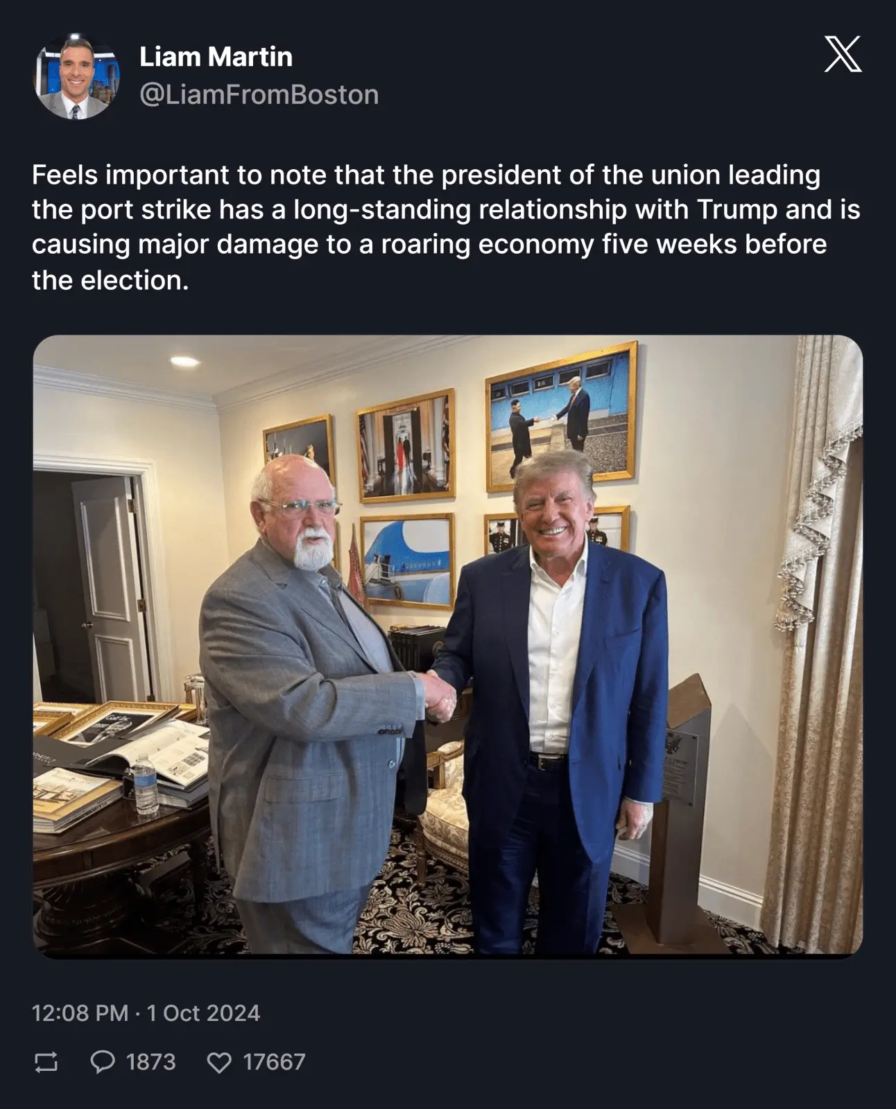 The strike, which was also confirmed by the Port Authority of New York and New Jersey as well as the Port of Virginia, began at midnight. There appears to be a wide gap between the union’s demands and the offer of the United States Maritime Alliance, which uses the acronym USMX. The maritime alliance represents the major shipping lines, all of which are foreign owned; as well as terminal operators and port authorities.