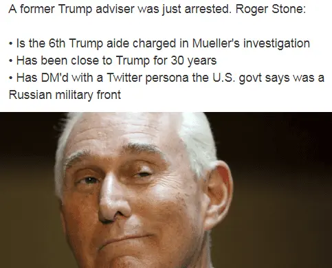 That's why the sly fox committed process crimes. To show Mueller who is boss. Great plan.Stone is accused of all process crimes. There was no crime until Mueller made them. No wonder the Judge didn't ask for any money for bail.
