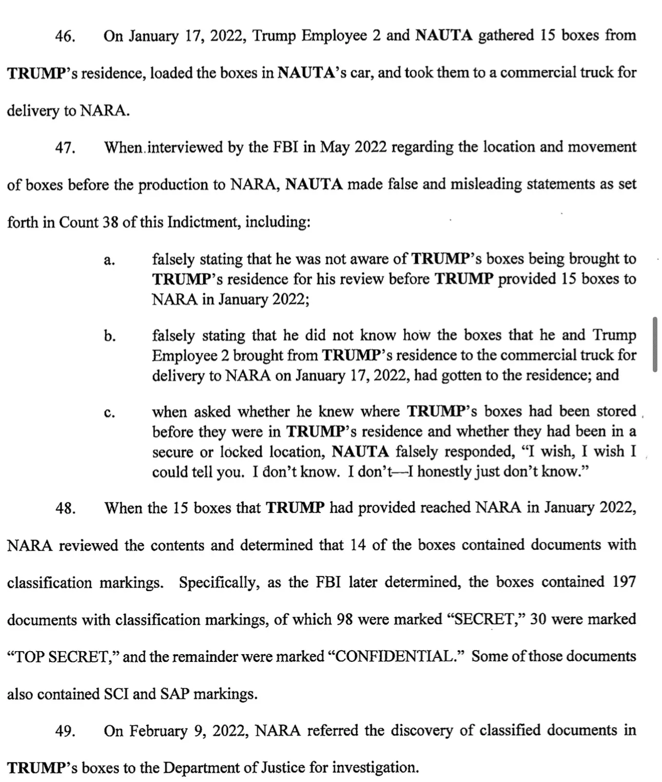 NARA went thru everything and came up with 15 boxes of documents, gifts, and other government property from Mar-a-Lago.