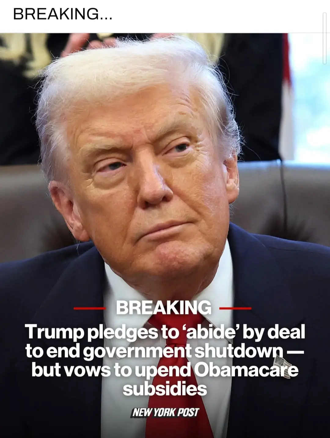 Trump pledges to ‘abide’ by deal to end government shutdown — but vows to upend Obamacare subsidies