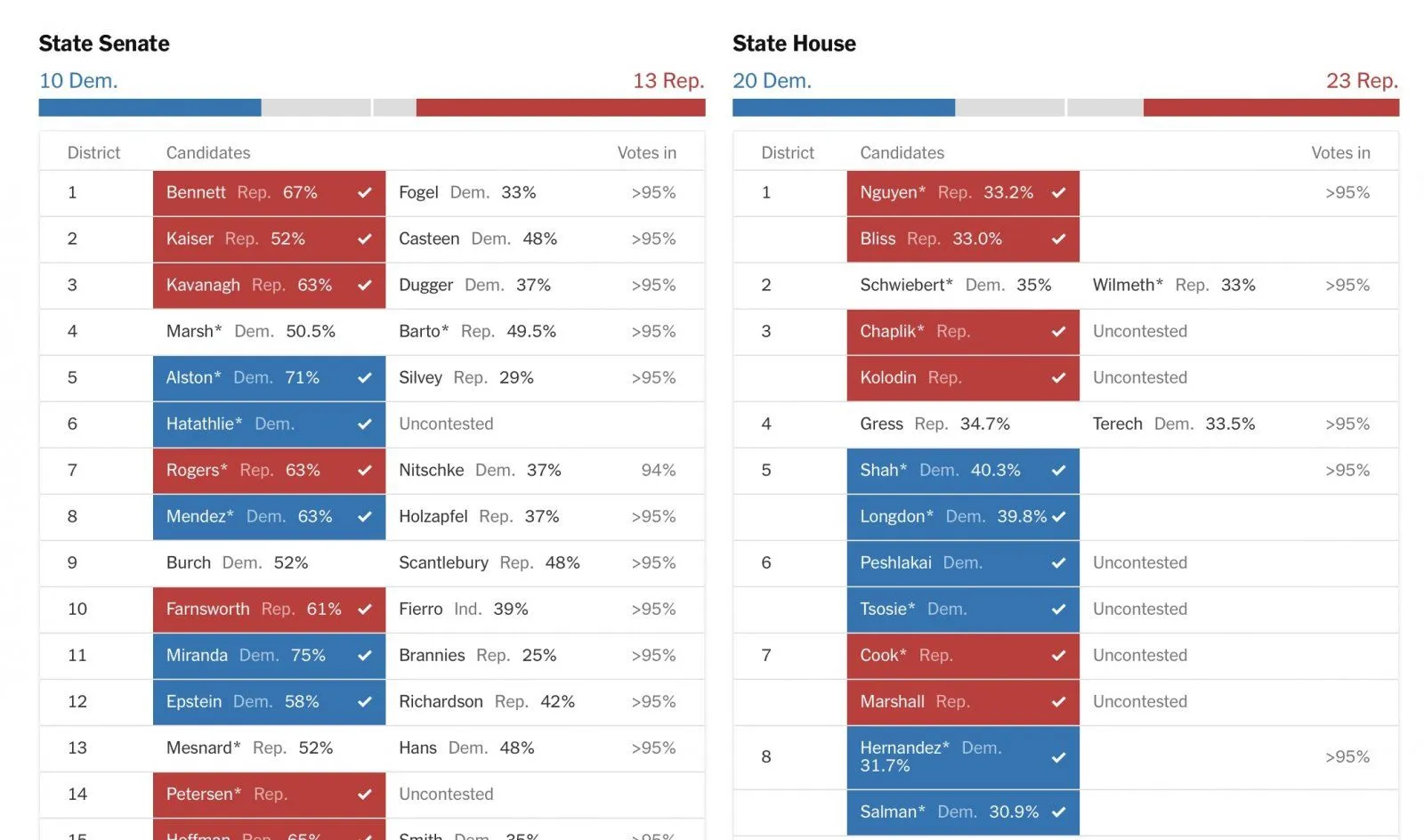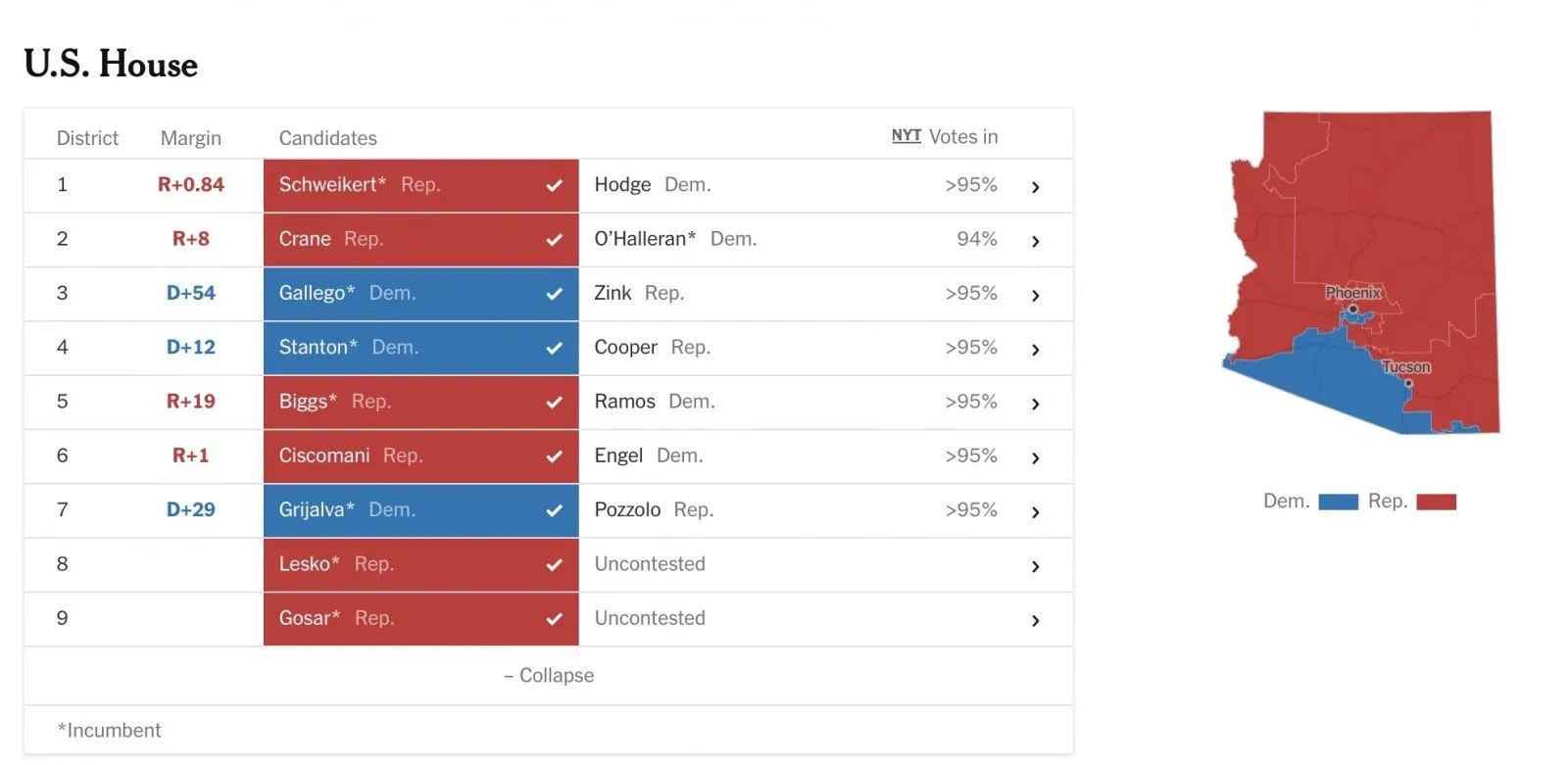 Yes, the Dems stole the statewide elections through fraud again. They control the elections and can easily bring in boxes of mail in ballots all filled out for the big races, Gov, Senate, Sec of State. They can do that by cheating the Maricopa and Pima counties. They can’t steal the rest.Lose gov office. Lose senate seat. Lose 40% of the house seats. Lose 47% of the state legislative seats.