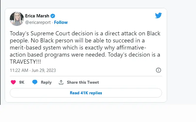 I understand what she is saying, because of the simple fact that there has never been a merit based system in this country when it comes to folks of color.