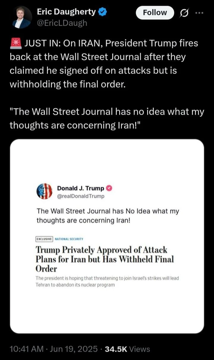 And the fact is, even if we don't bomb Iran, our President Trump is not dimwitted enough to say that as fact - thereby eliminating any leverage that hypothetical force delegates to our diplomacy.