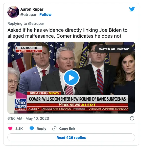 Earlier Sunday, The Gateway Pundit reported that Oversight Committee Chairman James Comer told Maria Bartiromo on Sunday Morning Futures that an informant on Biden family crimes might have gone missing.