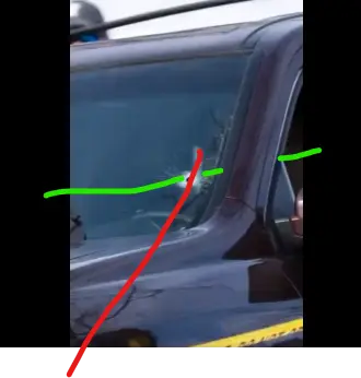 Show us the ballistic data that was a part of your “investigation’, or, is a goofy hand drawn image with your “because I say so” nonsense the best you can present.Explain physics dipshit. A shot from the front hits safely left of the driver (or on the right of the shooter). Only a shot from the side hits her face.