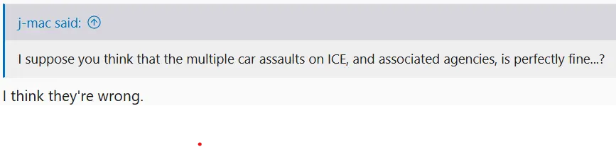 Clearly I'm referring to the multiple car assaults on ICE. They're wrong.