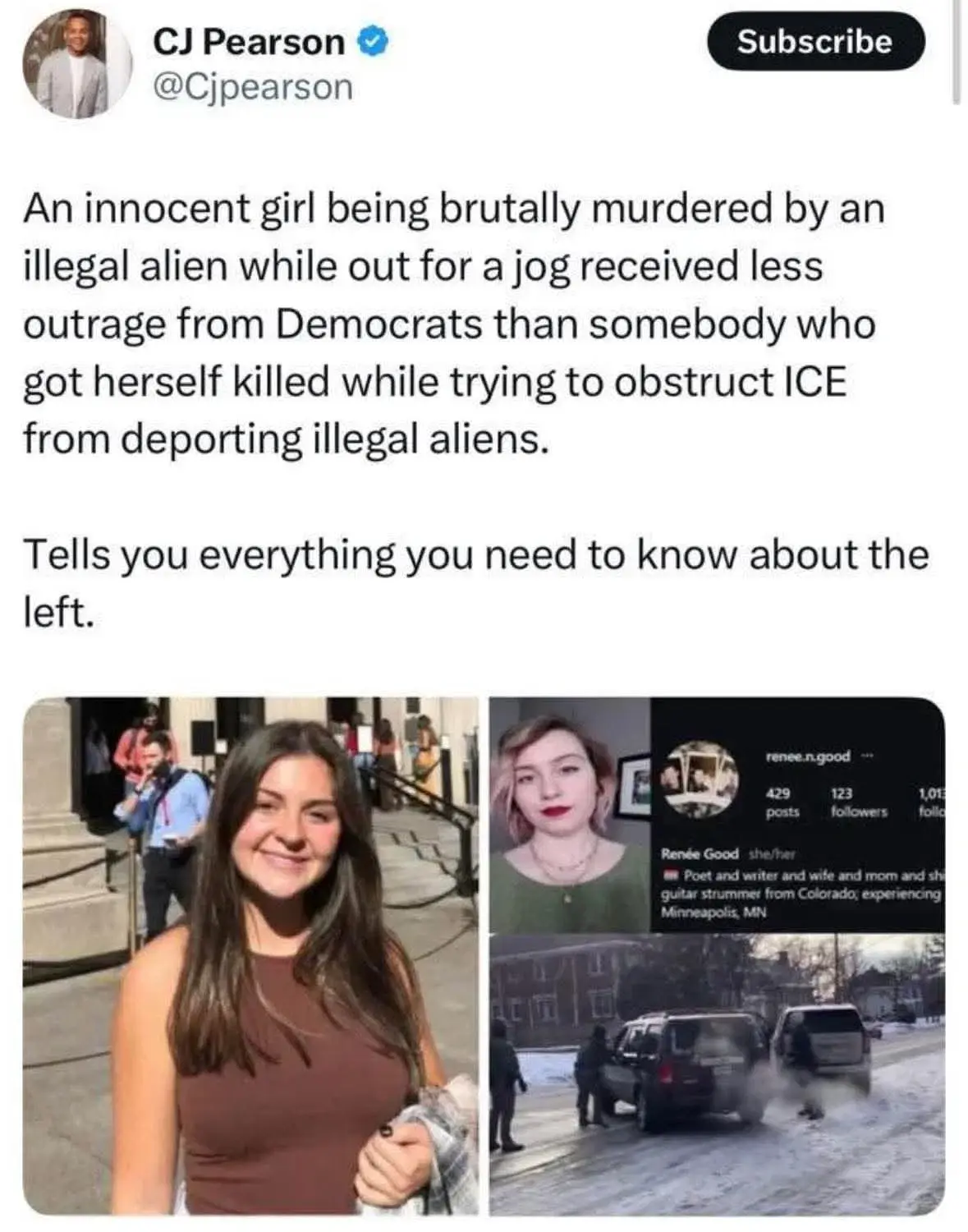 I can guarantee you that ICE didn't call her up earlier that day and ask her to come get shot.