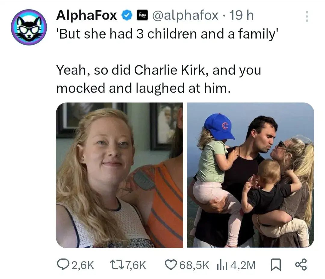 It was random idiots on the internet that mocked Charlie Kirk's death....and now look at the random idiots mocking Good's death.