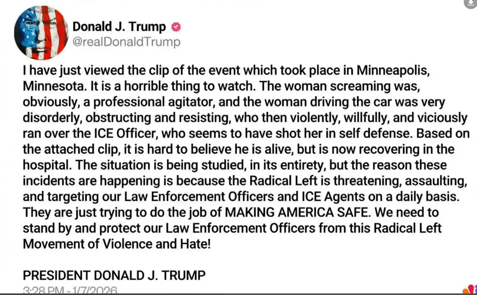 It's shocking to me that we are all watching the same video, and so many of you MAGA are coming to the conclusion that something so clearly unjustified was possibly justified. The very same group of people that were outraged when Ashli Babbitt was shot? If this was justified, then how in the hell was the Ashli Babbitt shooting unjustified? And take a moment to imagine how MAGA would react if Biden followed up by posting a social media post regarding Ashli, like Trump has with this shooting: