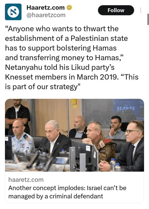 Yes, Hamas was supported, and partially funded, by Israel. In hindsight, it was a mistake. But honestly, what the hell did Israel think was going to happen. Israel openly supported Hamas because they wanted to dispose of Fatah, which was the bulk of the PLO. The difference between Fatah and Hamas, Fatah was a secular organization, Hamas is a religious one, kind of a Sunni based Taliban if you will.
