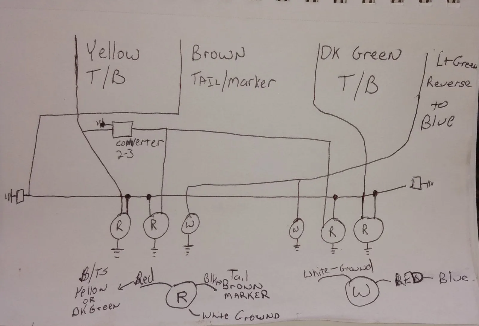 The diagram has been updated since the image above. The output turn signals from the converter are going to be wired into side mounted turn signals halfway down the side of the bed.