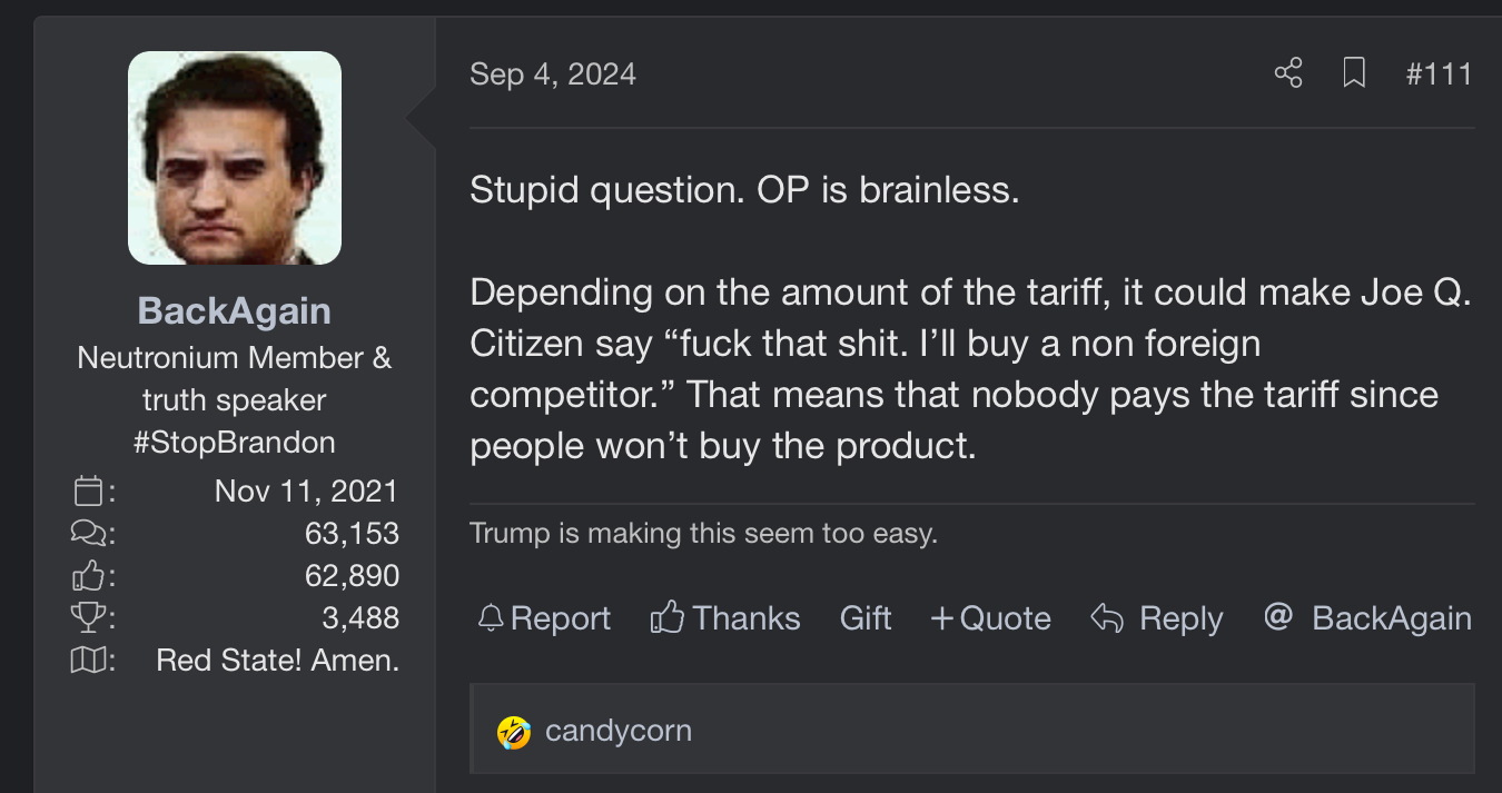 And yes, tariffs can temporarily raise prices. Thatās the whole point: short-term pressure to get long-term trade concessions, and Biden kept most of Trumpās tariffs for four years straight, and prices still skyrocketed, so pretending ātariffs = inflationā is lazy economics.