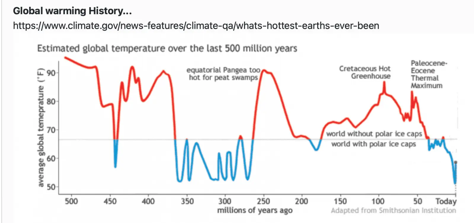 Now I'm not saying there isn't "Climate Change"... because this chart shows what the temperature of the Earth was at one time when it was over 90° f.