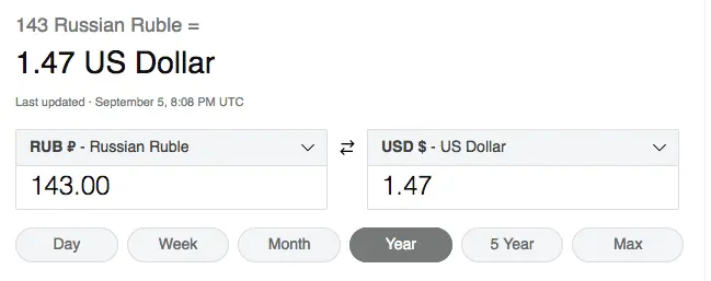 That's a really good deal to take it on credit actually because the value of the ruble is falling through the floor. Today that bread is $1.44 but if you just wait one month that $1.44 will turn into about 15 cents!