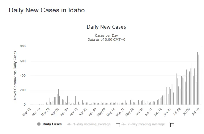 One of those skewed things...two counties providing 80% of the increase--still the raw numbers look OK. Numbers of people with a Covid diagnosis as opposed to numbers requiring hospitalization because of Covid..also is a a cogent number. Our hospitals are not close to being over-run.Dunno about criteria, but Idaho has opened up for the most part. No mandatory masking..and barber shops and bars are open. We've had a little spike and we pushed it down.