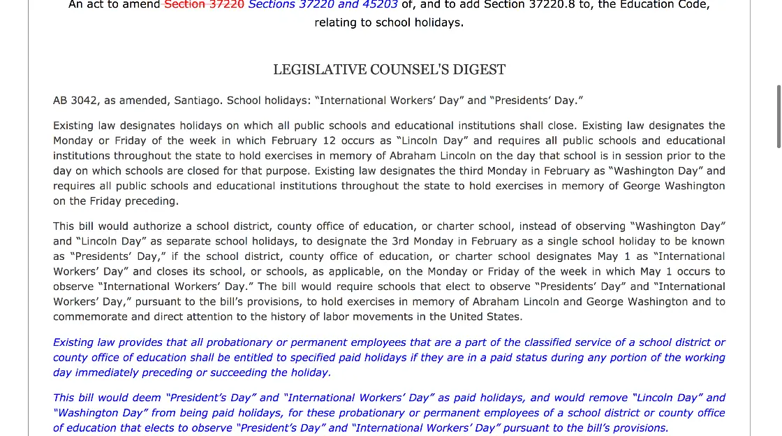 The California Assembly discussed Thursday a bill that would replace Abraham Lincoln or George Washington’s birthday with International Socialist Workers’ Day as a paid holiday.