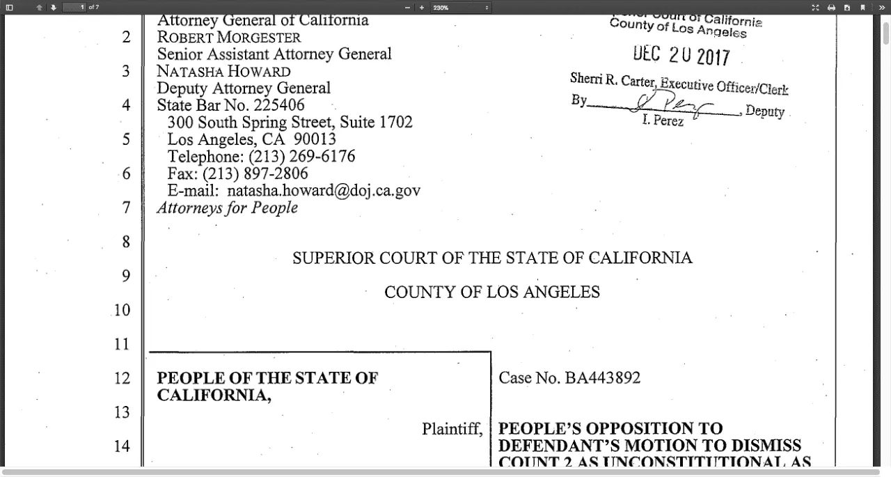 Tomorrow a judge will hear this case. If the case is thrown out with prejudice, then the job is to sue the holy **** out of the Los Angeles police and the State for civil rights violations. I would also urge the US DOJ to launch a civil rights investigation into the conduct of this state where clearly the basic civil rights of citizens are denied.
