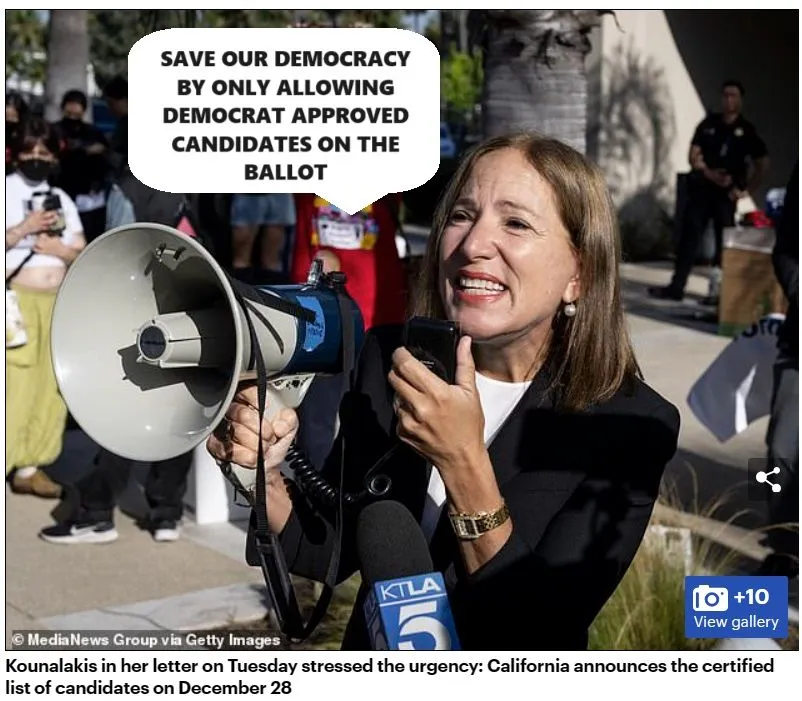 Eleni Kounalakis said it was a 'dire matter that puts at stake the sanctity of our constitution and our democracy' - and denied that she was acting out of 'political gamesmanship.'