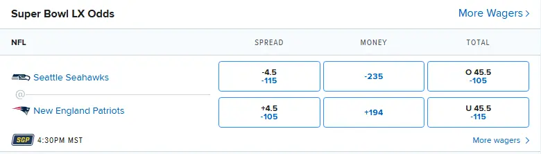 A guy I know at work liked that spread and was all in for New England staying inside the 4.5