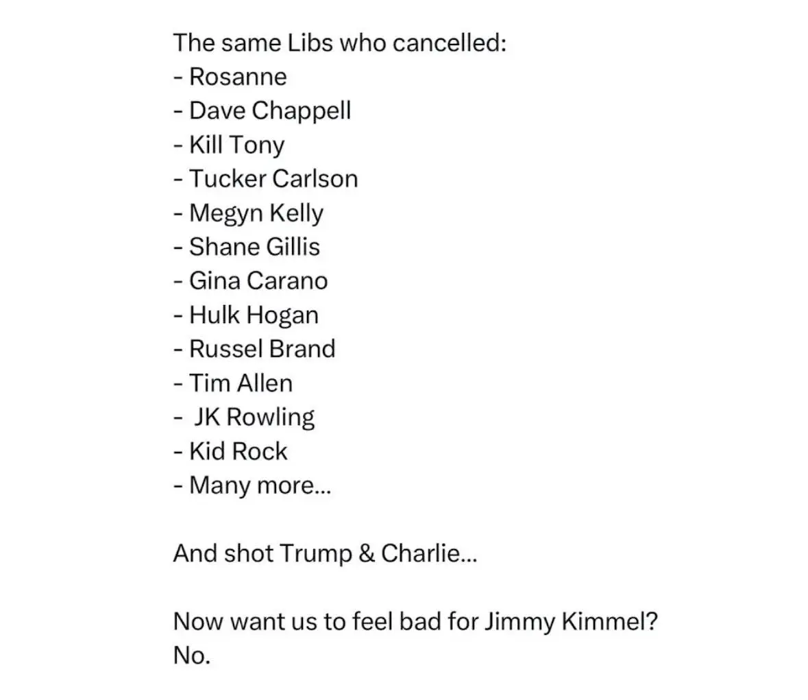 dude, it's better than that, all these suppressers who didn't feel we had a free speech right to deny the vax. All of these hypocritical two fking faced losers whining about this fking loser kimmel. A fking nobody.