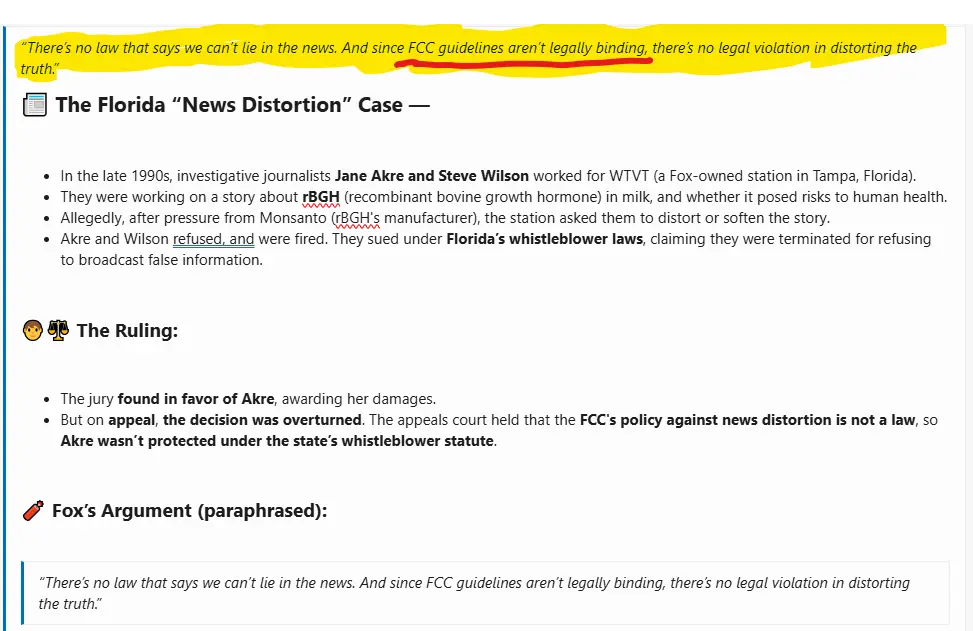 Second, Fox News is a CABLE outlet, not subject to FCC rules for public broadcast license.