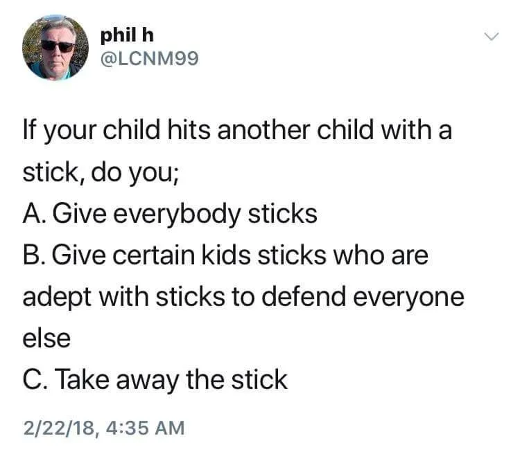 Go kick your own ass fuckhead. You want a statistic? 1600 deaths since 2012? Did someone give you Novocaine to the head to think that you can just stop killing by somehow stripping an entire population of their right to self-protection? Ever occur to you these schools are targets in the first place because THEY CAN'T PROTECT THEMSELVES? HOW MANY NEW deaths will occur from all the people who were not able to defend themselves from violent crime? You think criminals will turn in their guns? Do you think these kids who want to MURDER will just suddenly settle down? Or will they simply find A NEW WAY TO KILL? Maybe with a car, or make a bomb. And what about looking for a CAUSE? No. Never mind that JACKASS. Just kick everyone's doors in and raid their house and take all the guns from peaceful, law-abiding people. There is mental illness out there, and IT IS YOU. You so worried about 1600 kids, why don't you worry about 650,000.