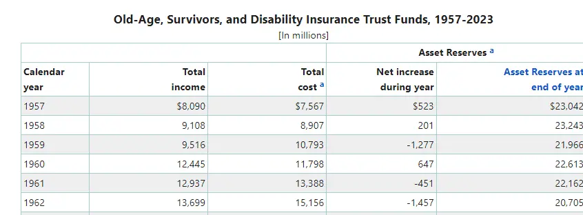 Dude. Look at the last column.and we DO collect more social security taxes than we pay out yearly and have since the mid 80s