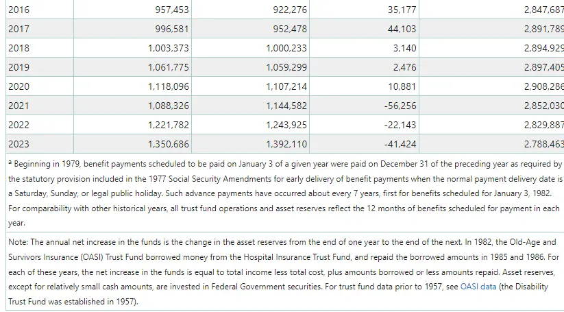 Yes. We no longer collect more than we pay out. We now collect a portion of what we pay out and draw off the Trust Fund for the rest.