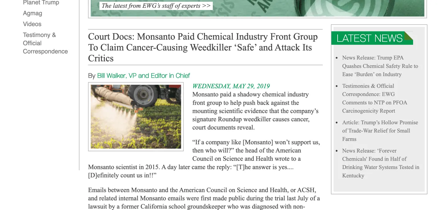 Court Docs: Monsanto Paid Chemical Industry Front Group To Claim Cancer-Causing Weedkiller ‘Safe’ and Attack Its Critics