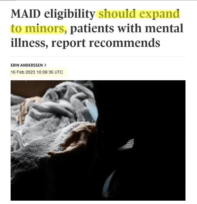 Who didn't see this coming? With the stoke of a pen Canada will make you a ward of the state then euthanize you. Next on the list? Jews! Didn't we fight a war to end this barbarism?
