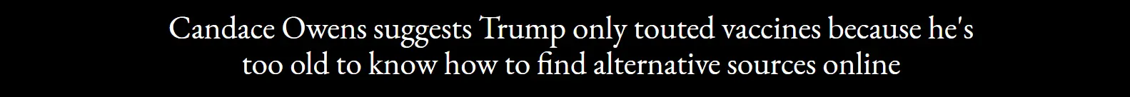 Donald Trump is backing the COVID-19 vaccine because he is "old," the conservative activist Candace Owens suggested to her followers this week.