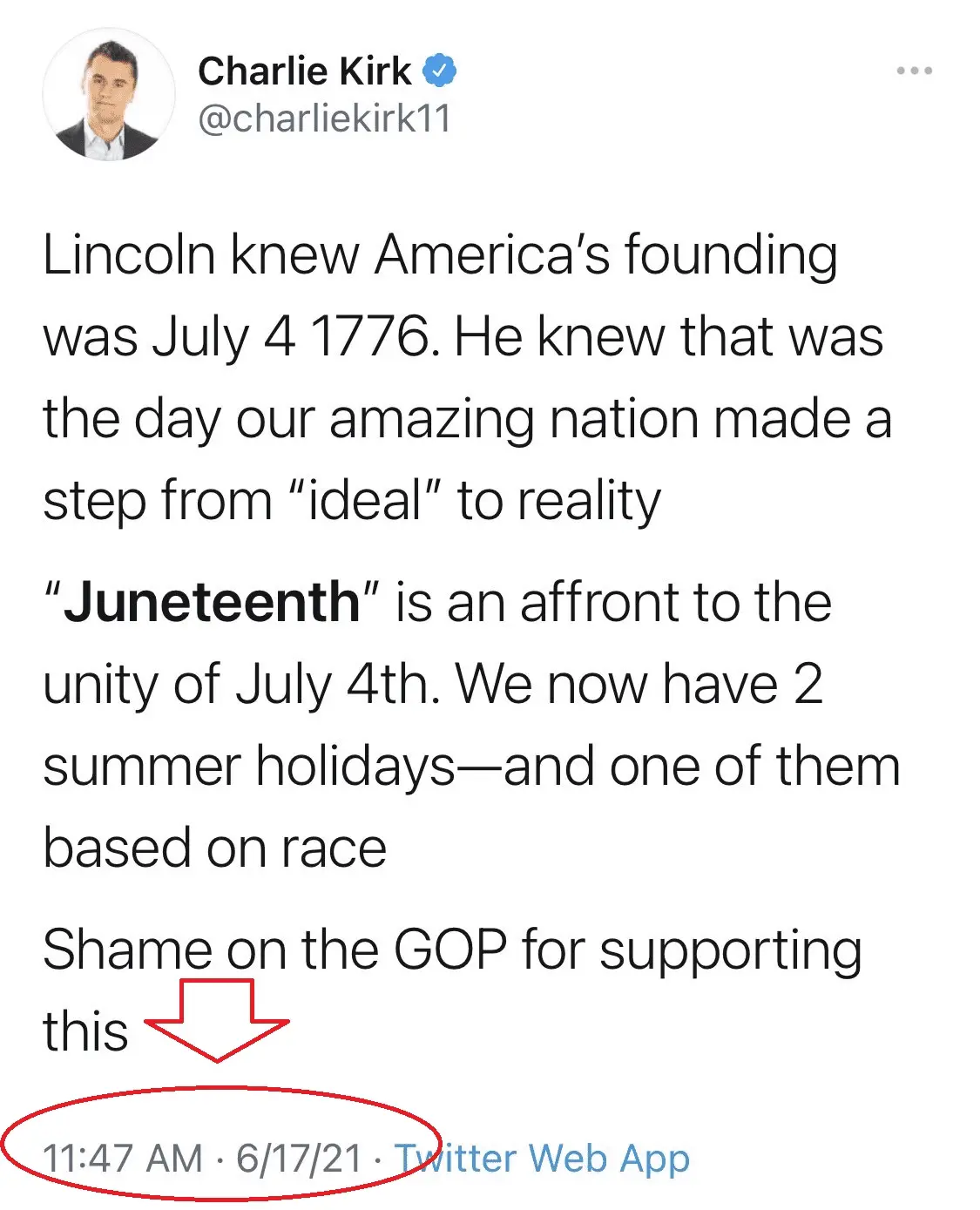 Yes, and he also claims that Juneteenth is a holiday based on race -- as if ending slavery is something only black people can celebrate.....View attachment 503169