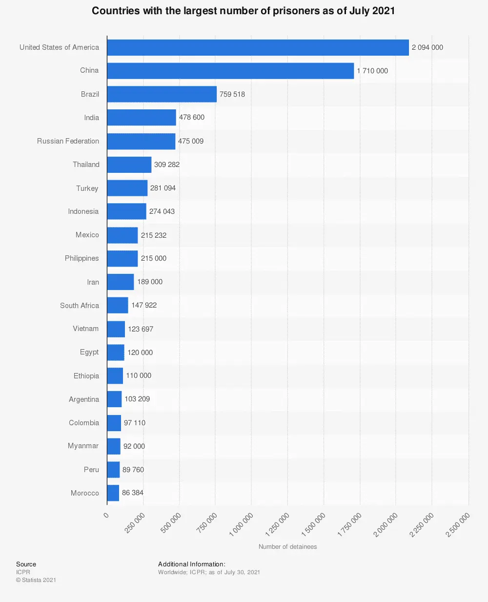 Here's a helpful chart on prisons. We lock up more people than China does.