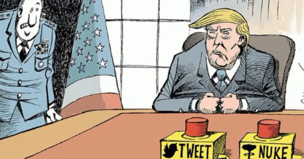"The fourth spectre is the evil 'mirror-image' of U.S. President Donald Trump, a capitalism-baron and supreme leader of the world; this 'mirror-image Trump' sits in a virtual Oval Office in front of his synthesized Presidential desk by his two 'power-buttons' --- Tweet and Nuke(!). This evil mirror-image Trump symbolizes the war-vulnerability of capitalism (e.g., Gulf War), and to manage his strange dominion, I have to administer messages of brand-marketing."