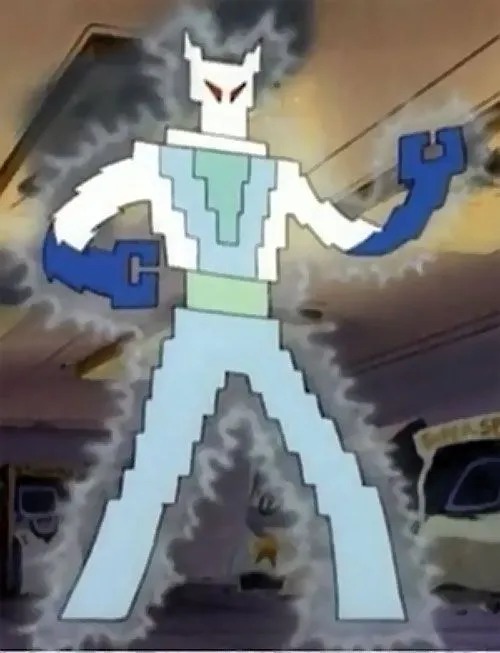 "The fifth spectre in this Phantom-Zone is the creepy Video-Man, a being of pure electricity, born as a sort of 'super-virus' but with the dimensions of a cut-out video-game character, complete with jagged edge bit/byte-like contours. Video-Man is the ultimate synthetic, but he's evil and he wants to terrorize with his power to scramble computer networks and algorithms and electric grids. To manage his dominion, I have to coordinate strength with imagination. That requires an appreciation of the harmonic balance of capitalism (e.g., World Bank) and the transcendental philosophy behind social security (e.g., welfare)."