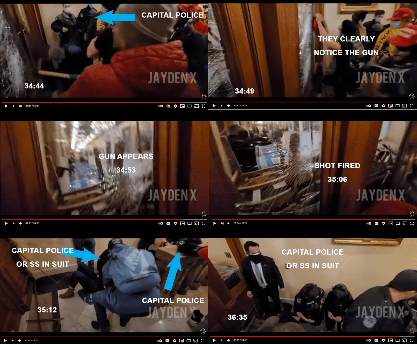 In this video, you see her shot at 35:06. Less than 6 seconds later, you see police in the frame. There was no reason to shoot her....at all. This should go to a grand jury.