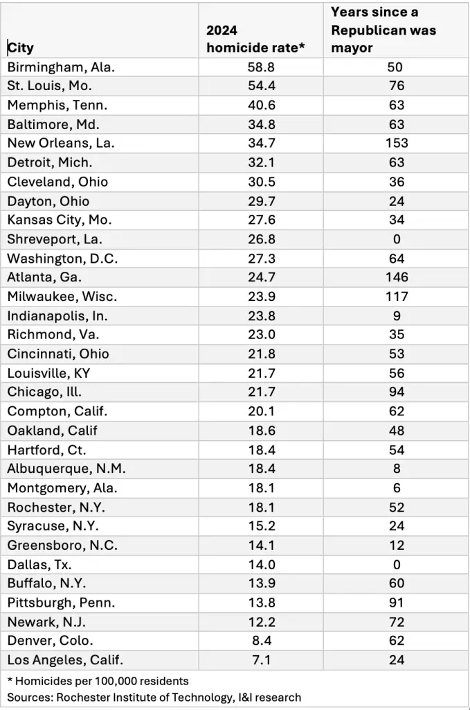 Care To Guess How Many Of The Deadliest Cities In The U.S. Have A Republican Mayor?