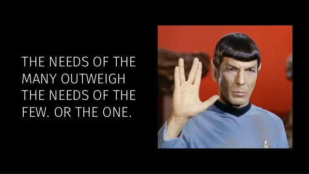 In God's eyes the needs of many do not outweigh the needs of the few or the one.Greetings