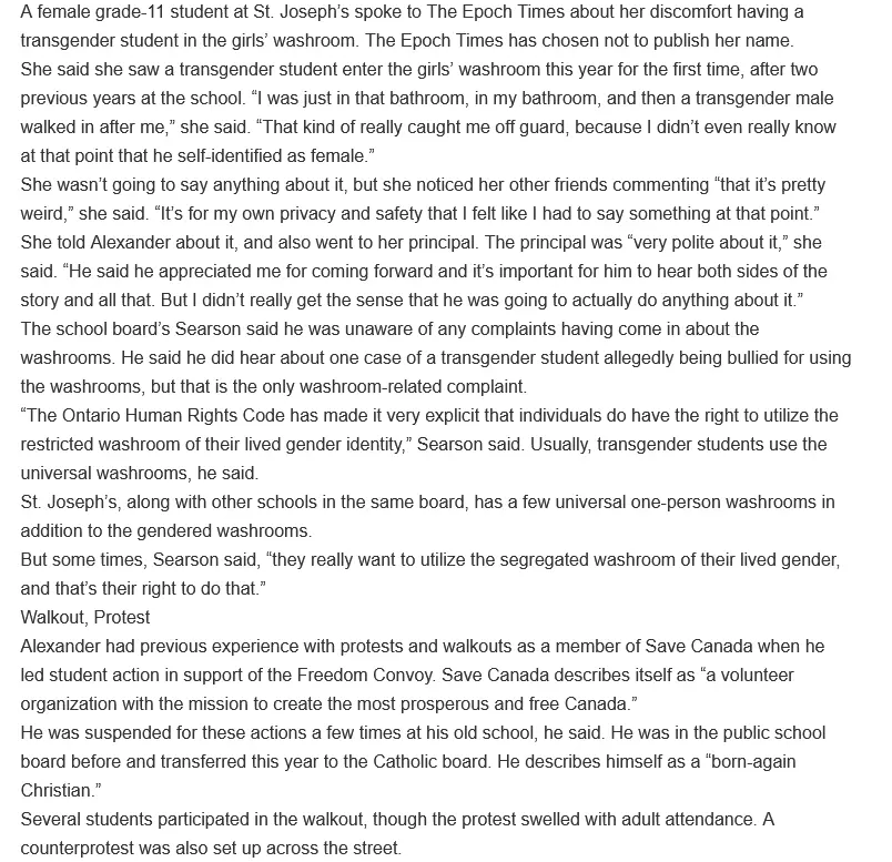 You said that you quoted the part where the article said that he was suspended for being inside the girl's restroom. I have yet to see this quote. You just had the whole entire article shown. Maybe it was a quote, but not the quote you claimed as you weren't quoting any specific part of it. Now show me the part that he was suspended for being inside the girl's restroom. Honestly, this is getting ridiculous.