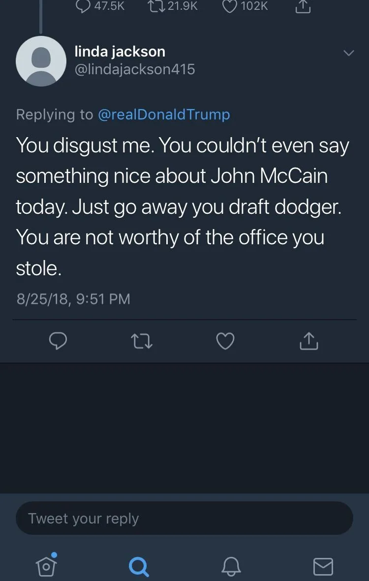 Well considering they were all running around calling McCain a Nazi... mocking his age and POW injuries in 2008...I would say they have no room to talk.They are right.Celebs Trash Trump in Response to John McCainâs Death: âF*ck Youâ