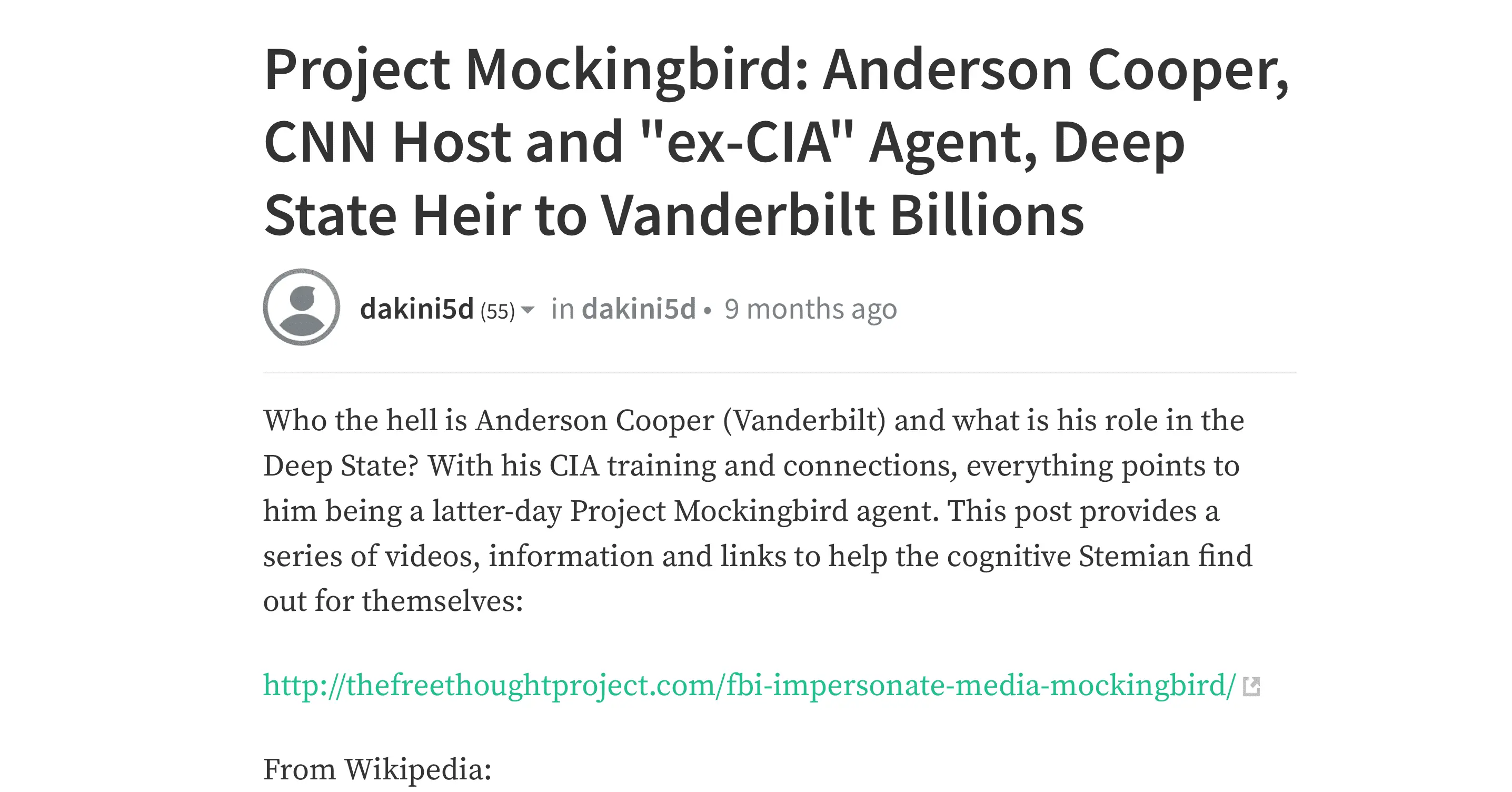 Project Mockingbird: Anderson Cooper, CNN Host and "ex-CIA" Agent, Deep State Heir to Vanderbilt Billions — Steemit